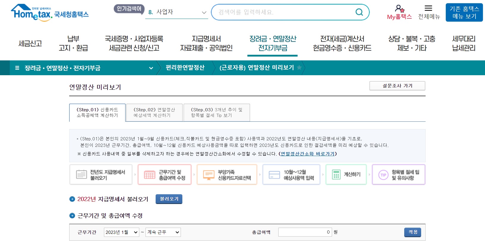 (근로자용) 연말정산 미리보기로 접속합니다.