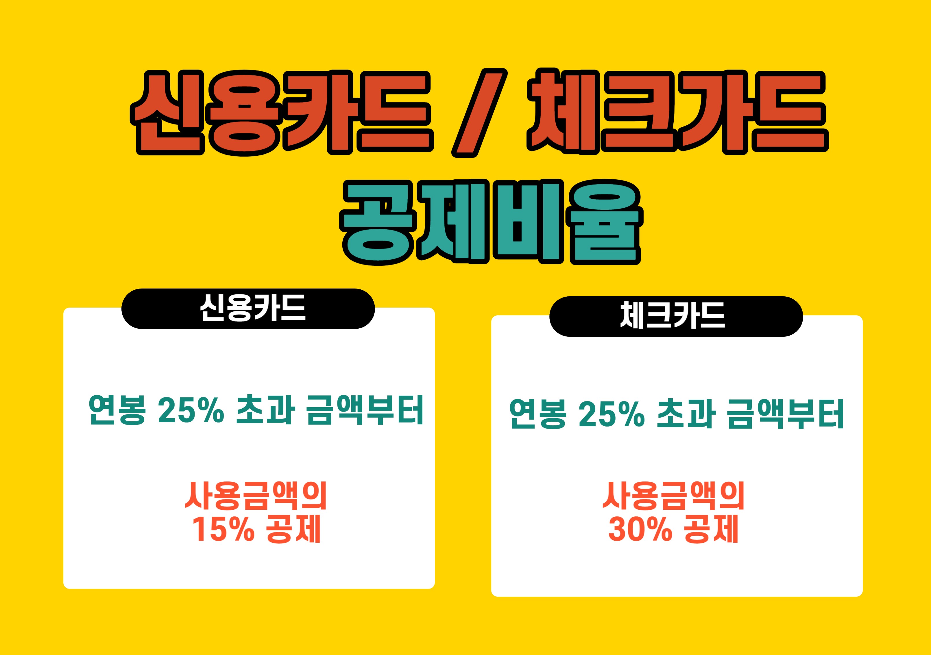 2500만원 초과 금액부터 신용카드 15%, 체크카드(현금사용 포함) 30%에 대해