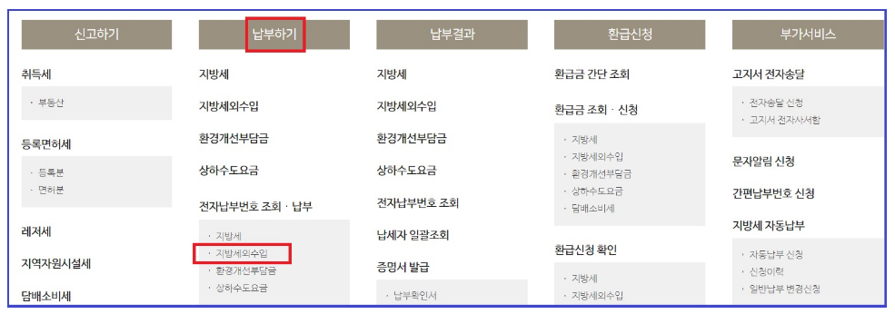 위택스 → 납부하기 → 지방세외 수입을 클릭합니다.