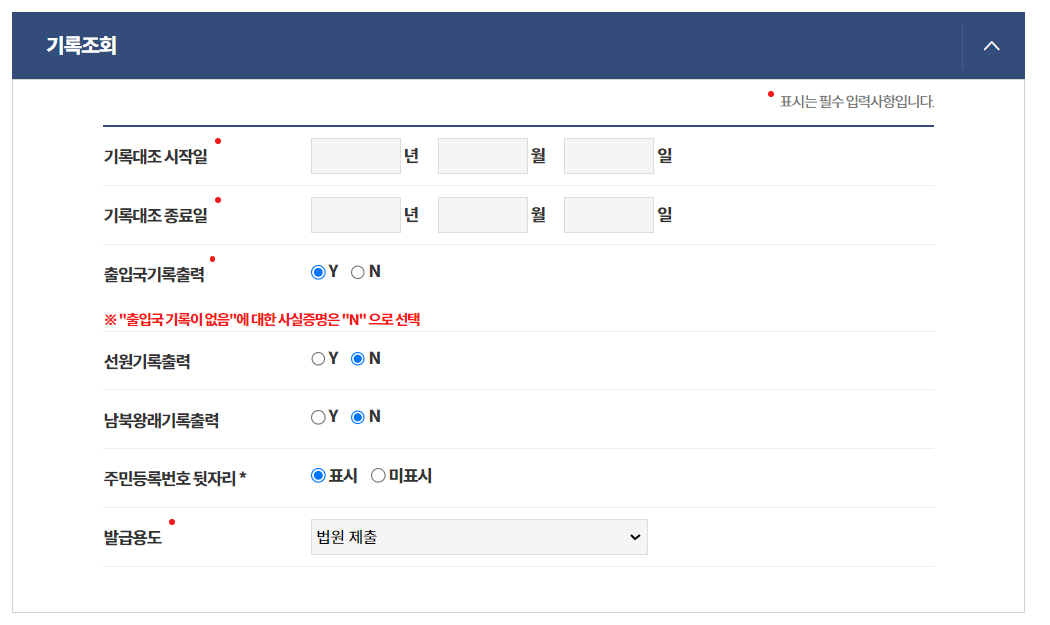 ③ 출입국기록이 없는 경우에는 "기록 없음"으로 증명서가 발급됩니다.