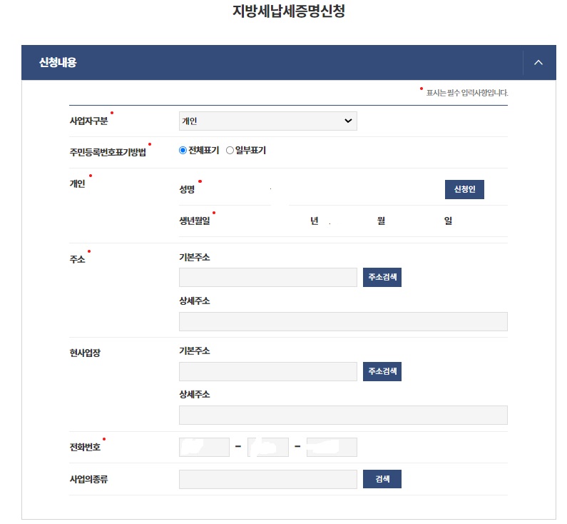 개인사업자는 사업자등록번호로 지방세납부증명서를 발급받으시는 것이 아니고,