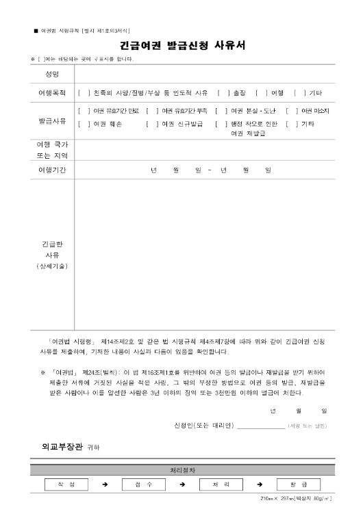긴급한 사유로 인하여 발급하는 비전자여권을 말합니다.