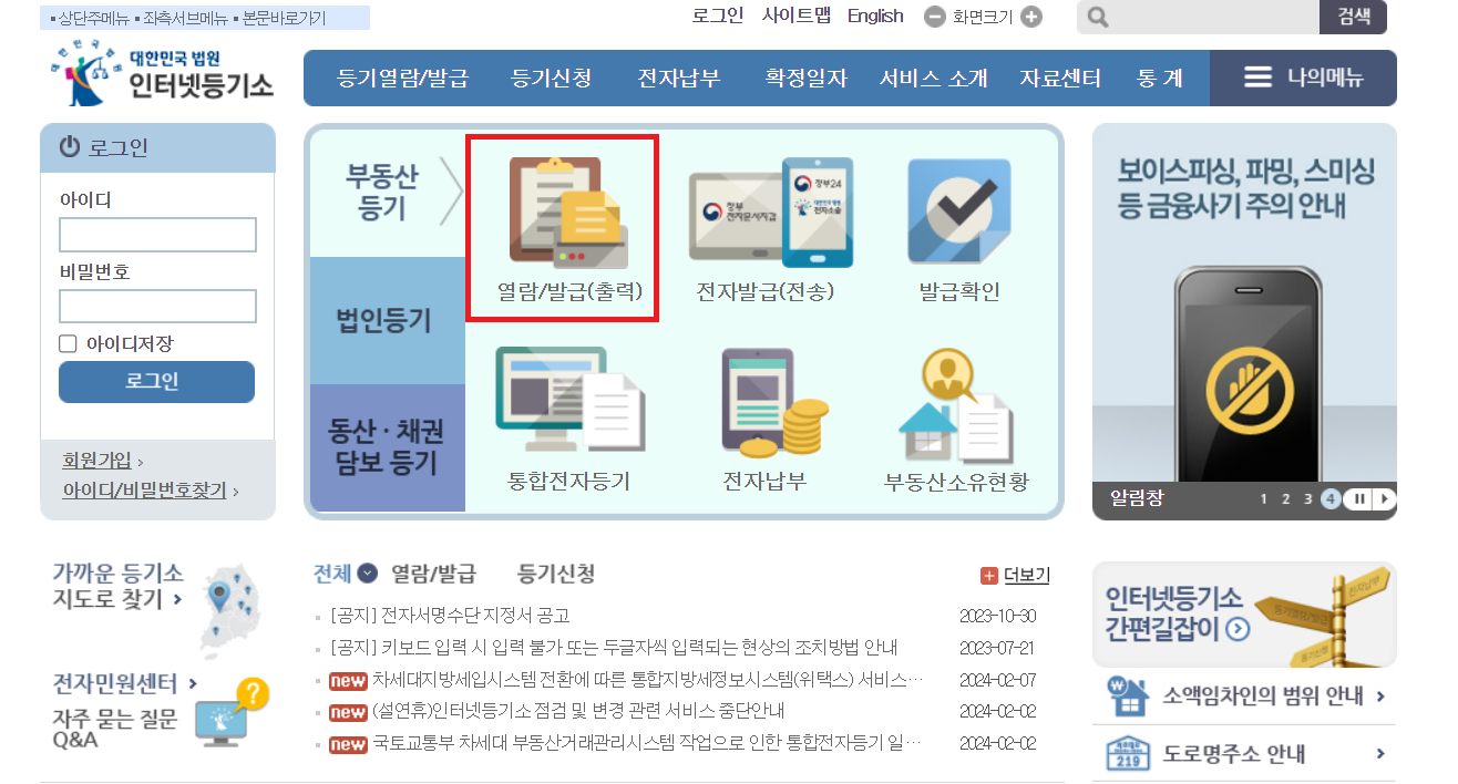 등기부등본 인터넷 발급(PDF 저장) 방법
