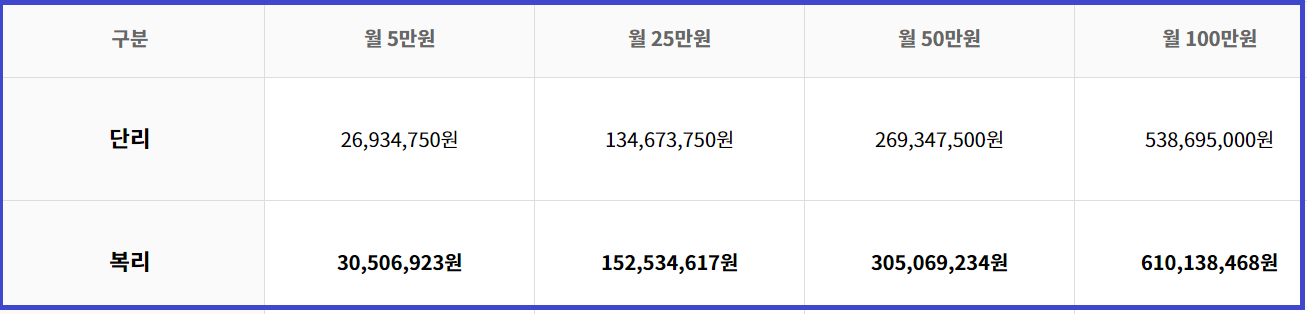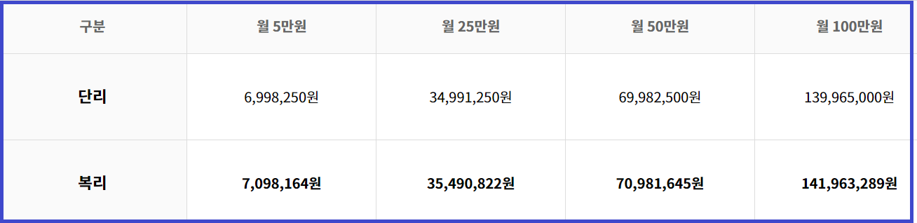 √ (예시) 5년 납입 시 원리금 (지급이율 3.3% 가정)