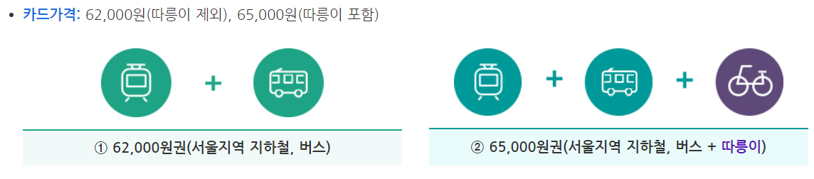1회 요금 충전으로 30일간 대중교통(지하철, 버스), 따릉이를 무제한 이용할 수 있는