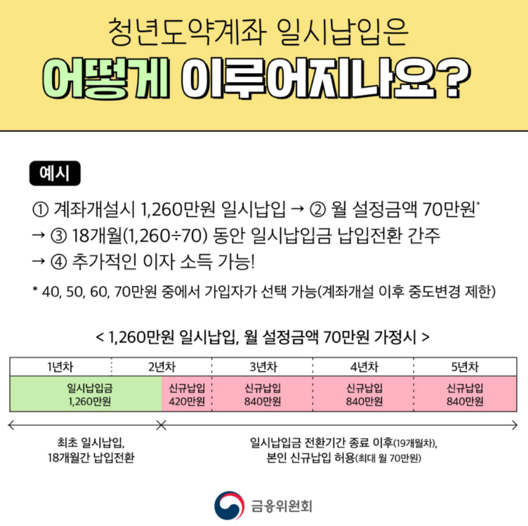 모은 최대 금액 1,260만 원을 일시납부 한다는 조건으로 청년도약계좌의 기간 60개월(5년) 중