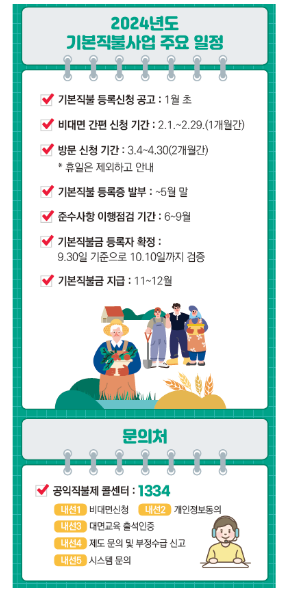 그럼 지금 바로 읍면동에 방문하셔서 2024 공익직불금 신청해 보세요.
