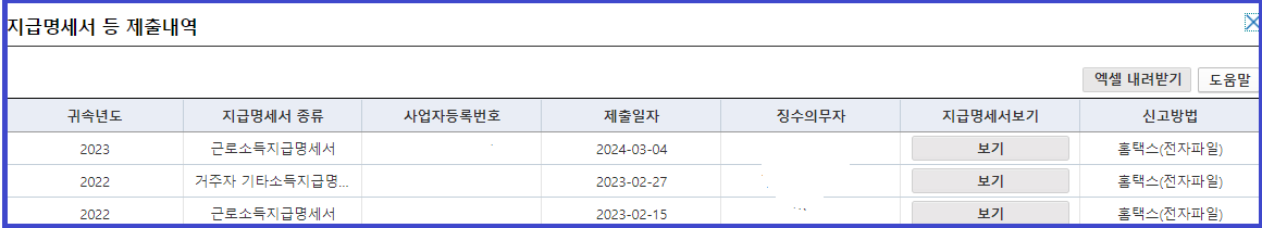 5. 근로소득 지급명세서 지출내역을 바로 확인할 수 있습니다.