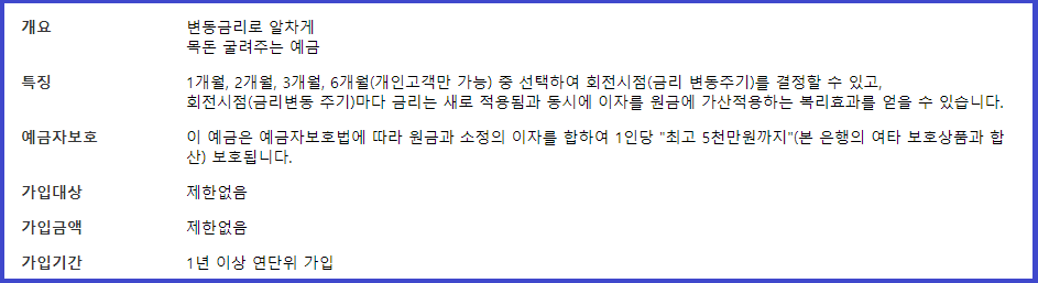 √ 두루두루 정기예금은 변동금리로 알차게 목돈을 굴리는 예금입니다.