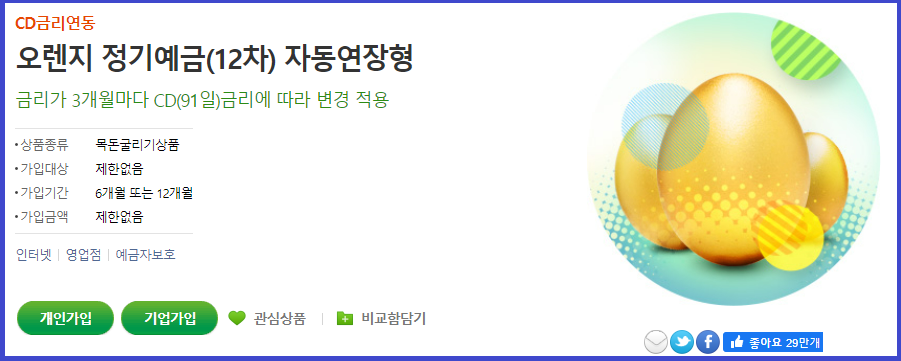 √ 오렌지 정기예금(12차) 자동연장형 금리는 3개월 CD금리에 따라 변경 적용됩니다.