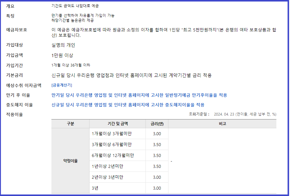 오늘은 우리은행 정기예금 금리 이자에 대해서 알아보겠습니다.