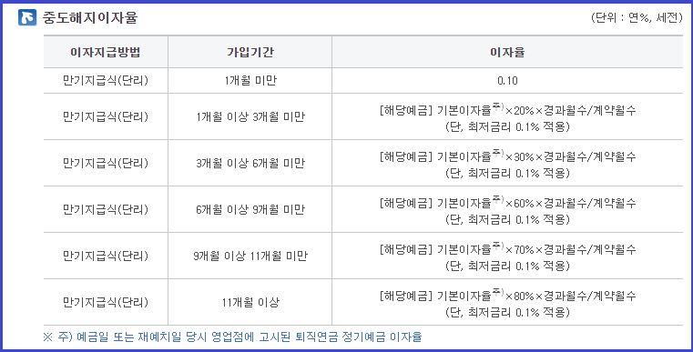 √ 가입기간별 이자율과 중도해지이율은 다음과 같습니다.