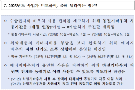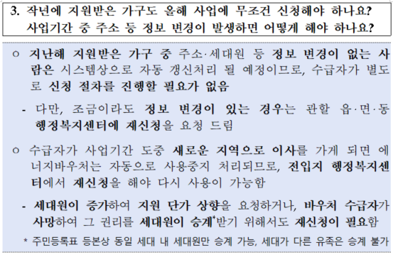 참고로, 하절기 에너지바우처를 사용한 수급자가 동절기에 위 사업들을 신청할 경우,
