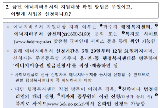 에너지 바우처 (신청자격, 신청방법, 신청서류, 사용기간, 사용방법)