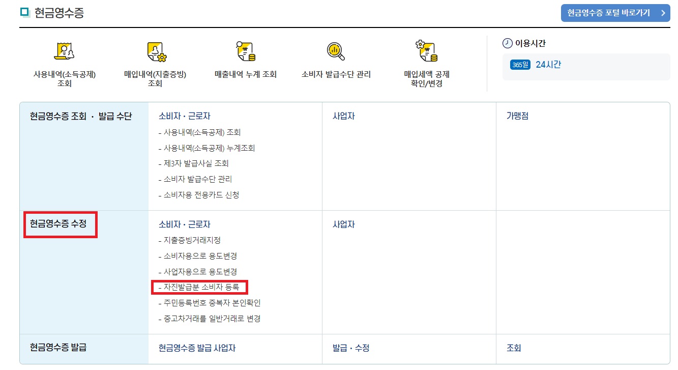 ② 현금영수증 - 자진발급분 소비자 등록을 클릭하시면 됩니다.